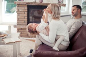 family being cozy on the couch depicting Reliable Comfort and Even Heating at home